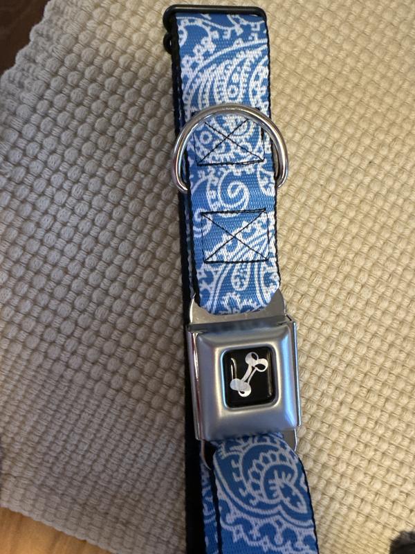 - The miniature authentic seatbelt buckle makes the collar easy for you (not your pup) to take off—simply press the center button to release the clasp!