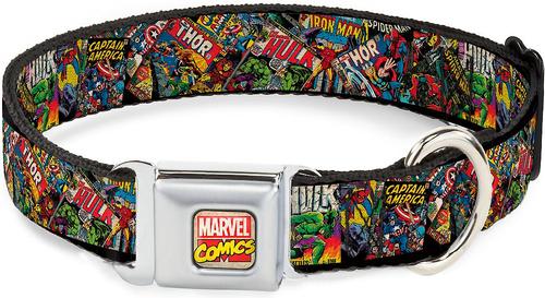 Buckle-Down Retro Marvel Comic Books Dog Collar, Wide-Small