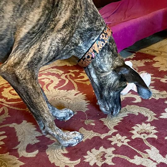 Zuzu loves her Scooby collar. We like the seat belt style buckle that keeps the collar on securely. She has another one from the same company with Day of the Dead
