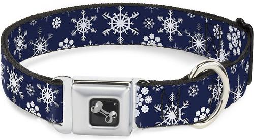 Buckle-Down Snowflakes Dog Collar, Blue, Wide-Medium