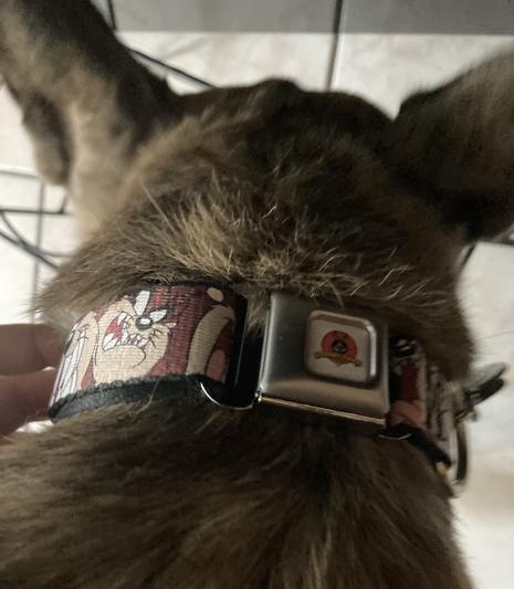 This collar is so cute. The "seatbelt" like latch is a cute design touch. Perfect for my little Tasmanian devil