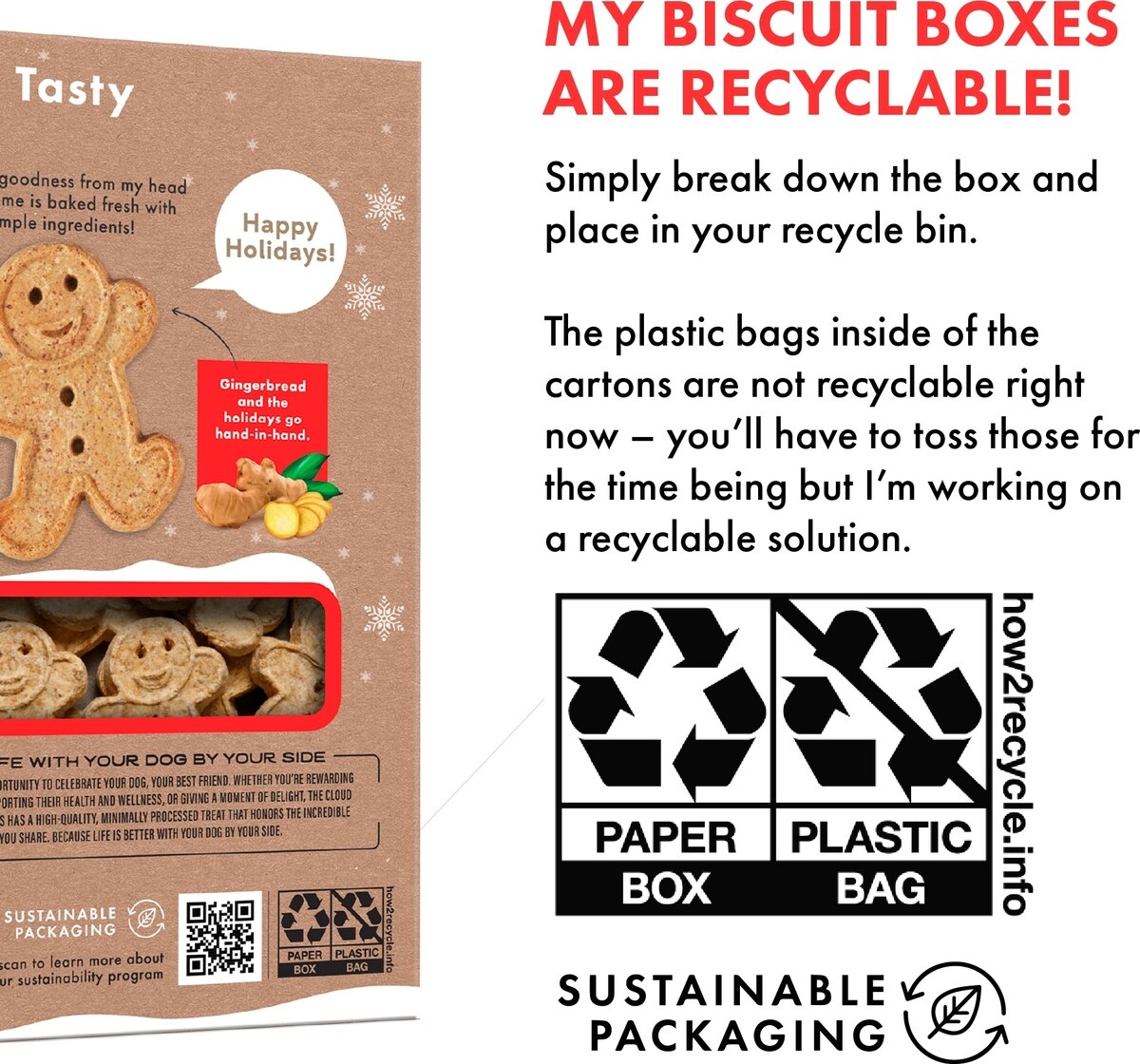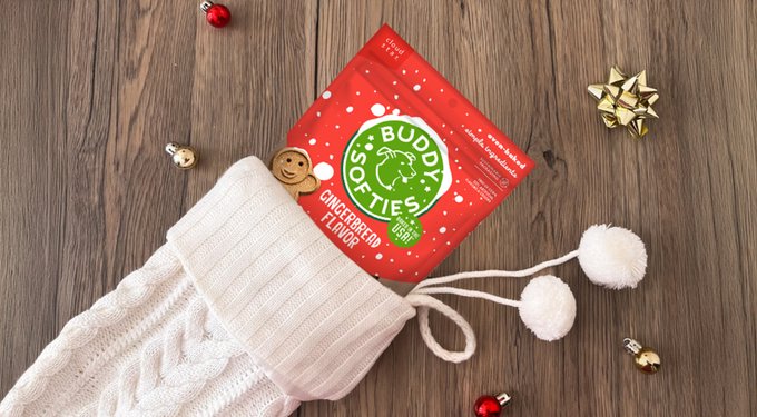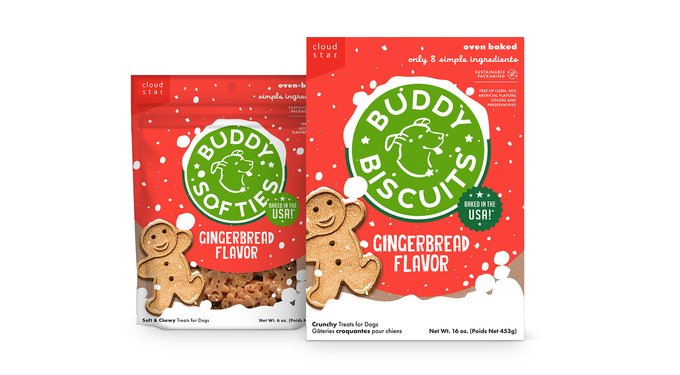 Buddy is the perfect companion for your best friend! Buddy’s adorable gingerkid shape and delicious flavors are sure to bring your pup joy this winter season!