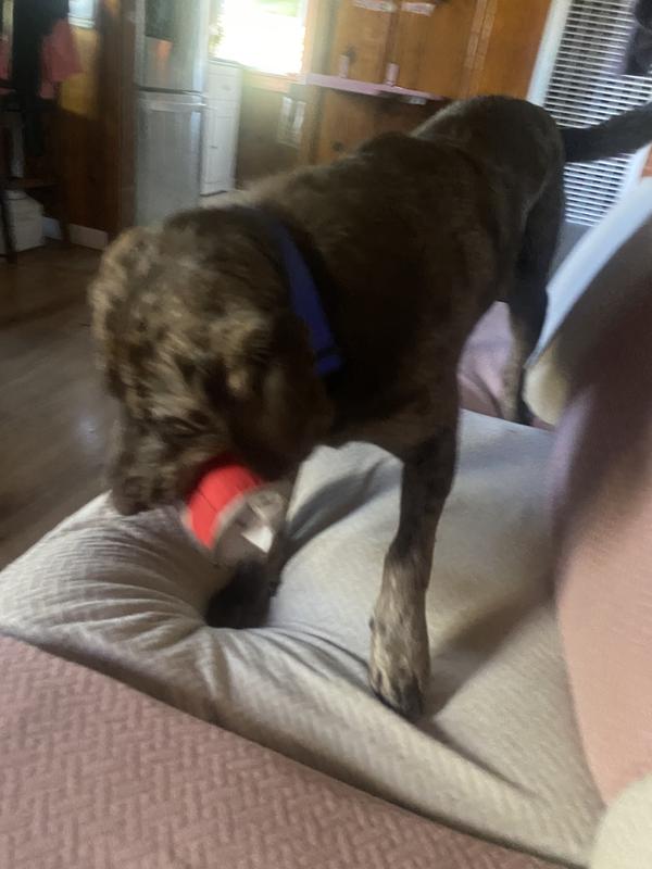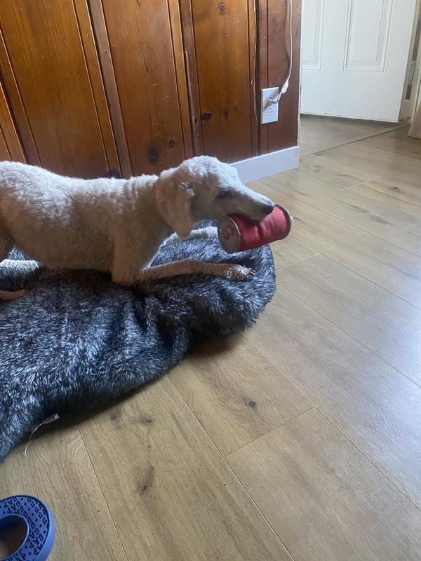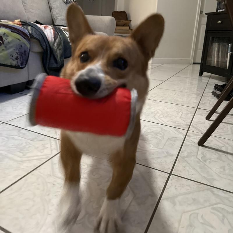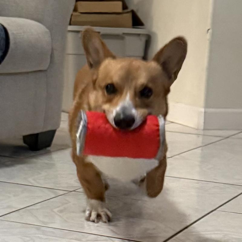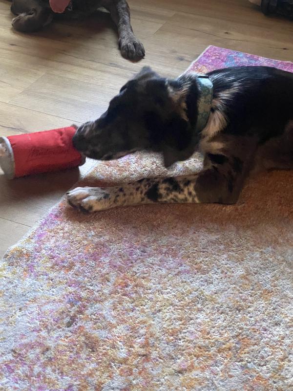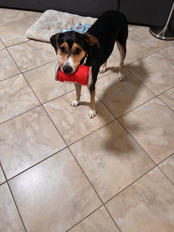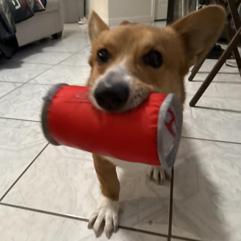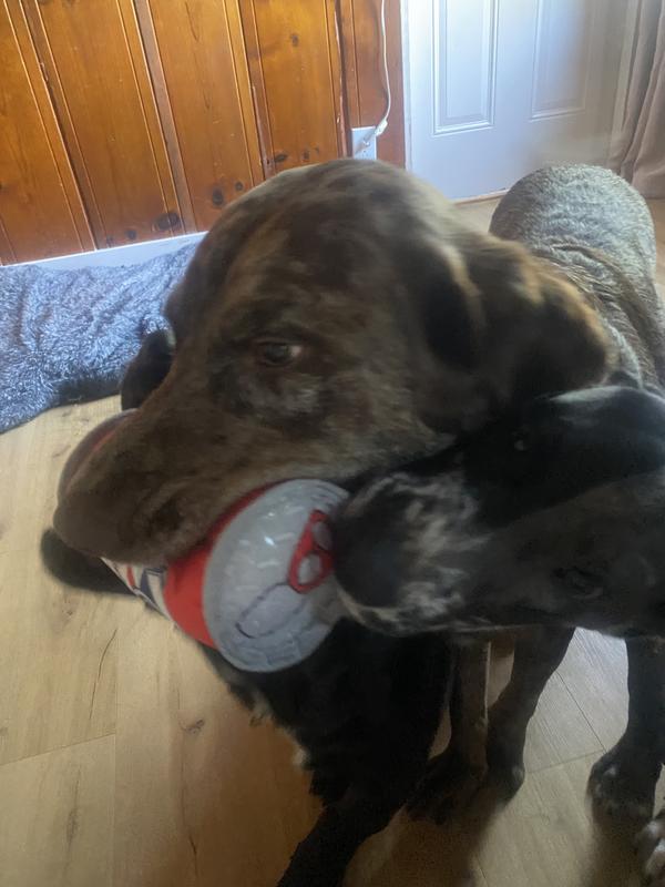 We have been rotating the Budweiser Tough Can TPR Dog Toy into fetch sessions for a week, indoors and outdoors, with Kurg Russell, our very energetic, fetch-obsessed almost-3-year-old Corgi. He was into it from the first toss. The can design is fun, and the bright color makes it easy to spot in the yard. The toy's surface feels water resistant, which might make it hold up for longer than other toys and makes wipe downs quick, although it can feel a little icky to handle mid-fetch after some slobber. I am taking off one star for two small things: The toy makes a shake sound that does not interest our dog, so for us that feature feels unnecessary, although it never hurt the fun. It looks a bit large for a Corgi’s mouth, even though he still grabs it and runs. Dogs with larger mouths may get an even better fit.