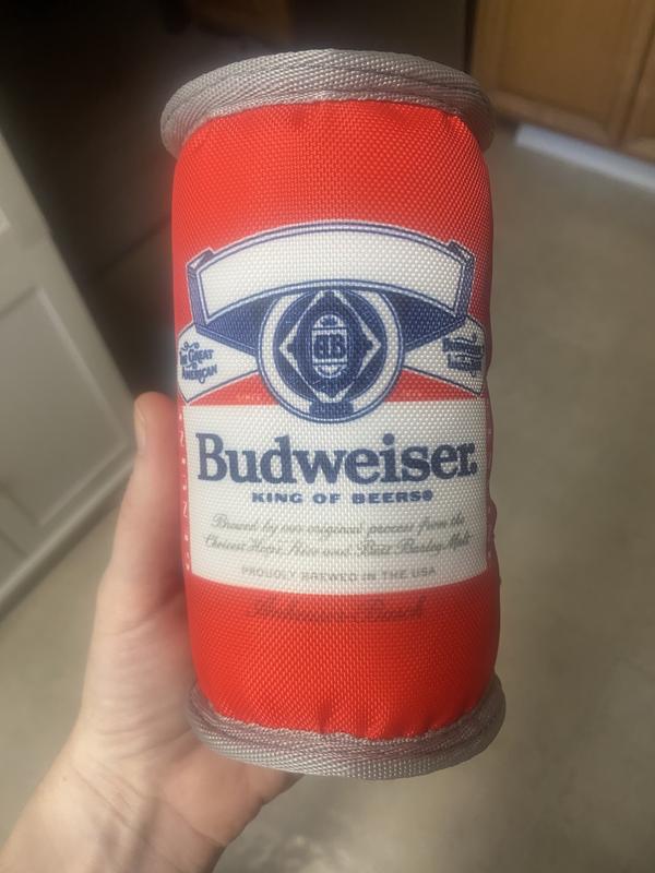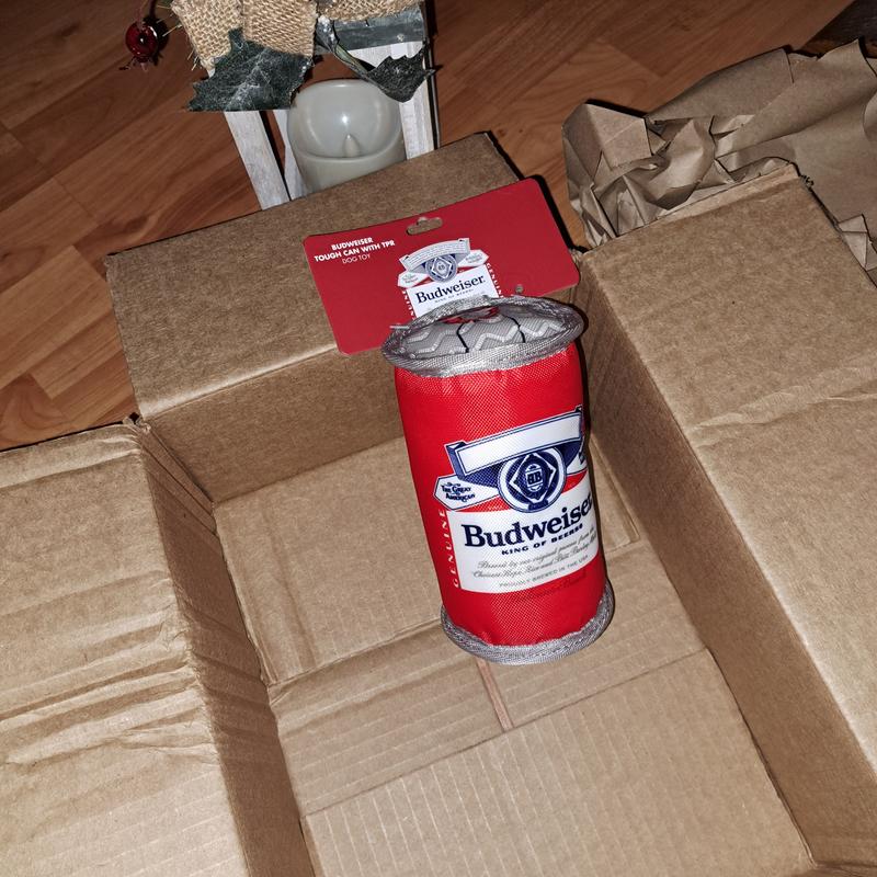 The Budweiser tough can toy was a cute squeaky toy made with quality material. It was well constructed but the squeaker didnt work. Bailey pushed it several times