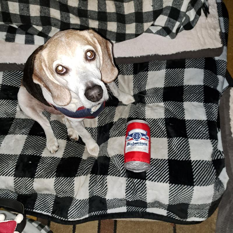The Budweiser tough can toy was a cute squeaky toy made with quality material. It was well constructed but the squeaker didnt work. Bailey pushed it several times with his nose and tried biting it numerous times but no noise. He looked at me like does it do anything. Bailey was not impressed. It's hard for me to recommend since the squeaker didn't work.