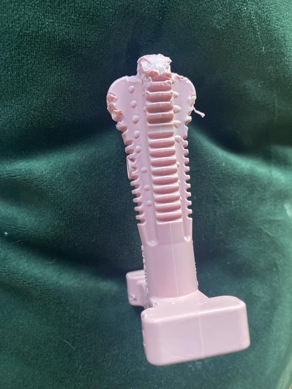 This chew is not intended to be consumed. Supervise your pet when using since small parts can present a choking hazard or internal blockage. Discontinue use if the toy is damaged.