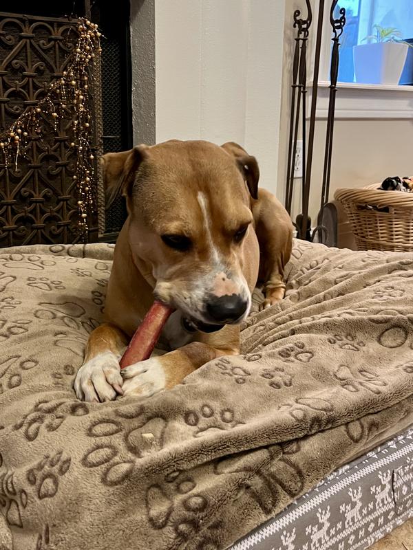 Our pit mix is the most aggressive chewer we’ve ever had. He went crazy for this bully stick! One of these substantial chews lasted about 40 minutes. That is record