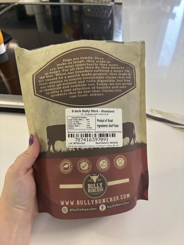 Bully Bunches 6-inch Standard Bully Sticks Dog Treats, 5 count