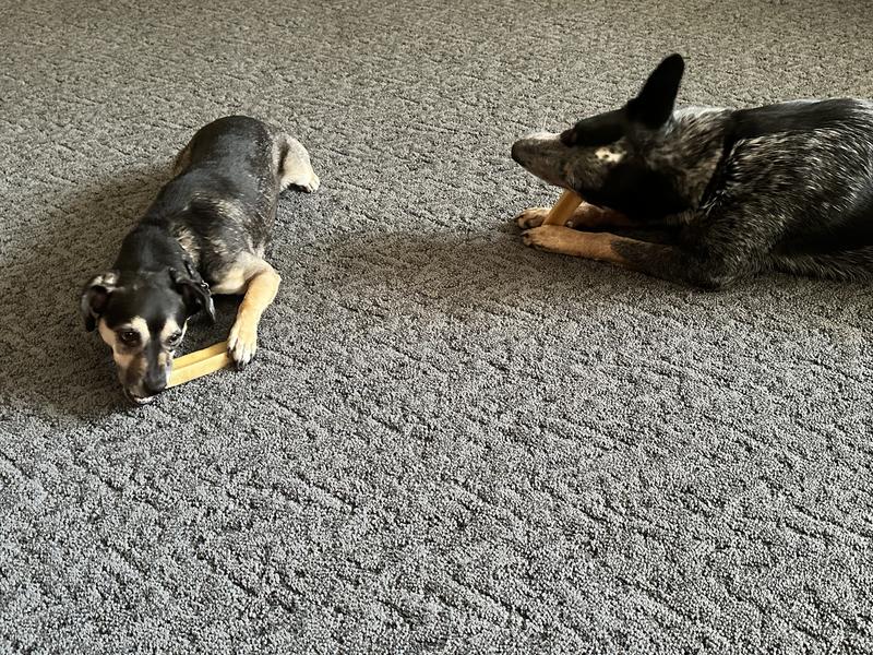 Zoey was not initially interested in the Bully Bunches Himalayan Yak Chew Dog Treat. However, when her friend Sia came for a visit, that changed. Sia immediately