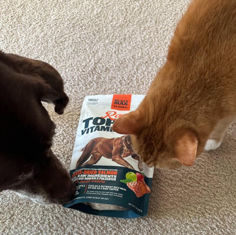 Raw Nutrition, Freeze-Dried Fresh Bully Max preserves raw nutrition through their special freeze-drying process. Unlike with cooked toppers, this method maintains essential amino acids, vitamins and enzymes that support optimal health. Just sprinkle on for an instant nutrition boost!