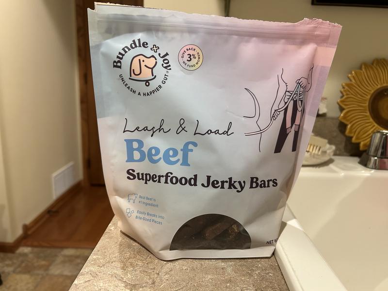 Bundle x Joy Leash & Load Beef Grain-Free Superfood Bars Jerky Dog Treats, 16-oz bag