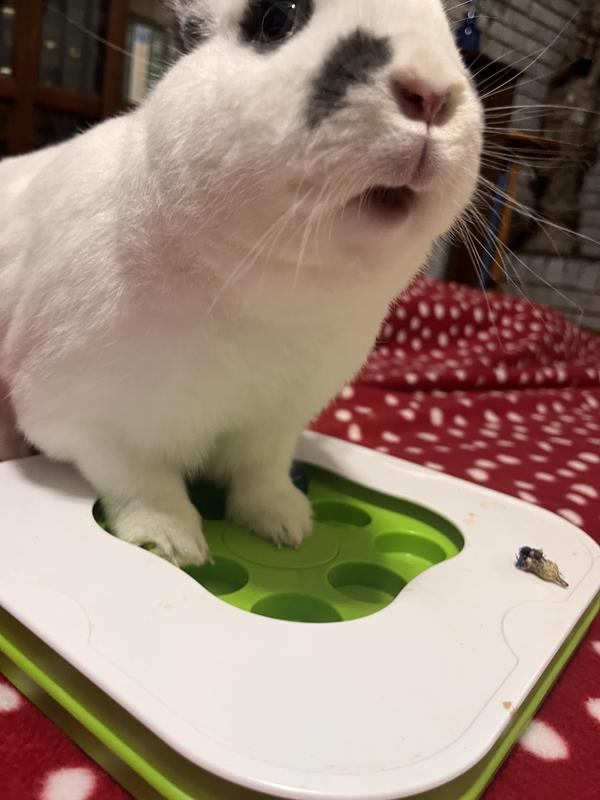 I decided to try this with both of our indoor bunnies, Muffin and Detective Smalls. I wanted to focus on Smalls since his urine can be a little dark and sometimes foamy. Since I've been giving it to him for a couple weeks his urine has looked a little lighter in color on his pee pad. I put the food in a separate bowl because he was interested in eating it at first and I wanted to make sure he ate something. He tends to snack on the food throughout the day now. He must like it because he would flip the bowl over if he didn't. I'll definitely continue to give this to him since it seems to help. I can now use it as a topper since I know he likes it. It's priced about the same as we pay for a 50lb bag of the Hutch food we feed our outdoor and indoor bunnies. However, I think it's priced well for a healthy food for those bunnies that need a little extra help.