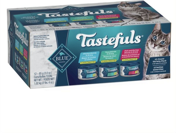 Blue Buffalo Tastefuls Natural Tuna, Chicken & Fish in Gravy Variety Pack Flaked Adult Wet Cat Food, 85-g can, case of 12