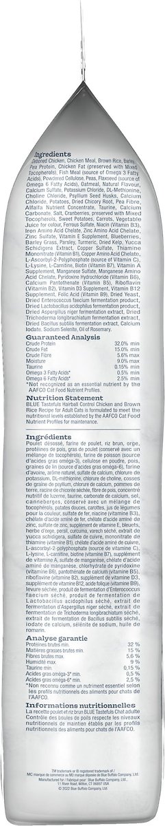 Blue Buffalo Tastefuls Natural Hairball Adult Indoor Chicken Dry Cat Food, 6.8-kg bag