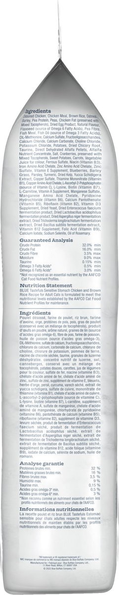 Blue Buffalo Tastefuls Natural Sensitive Stomach Adult Chicken & Brown Rice Dry Cat Food, 6.8-kg bag