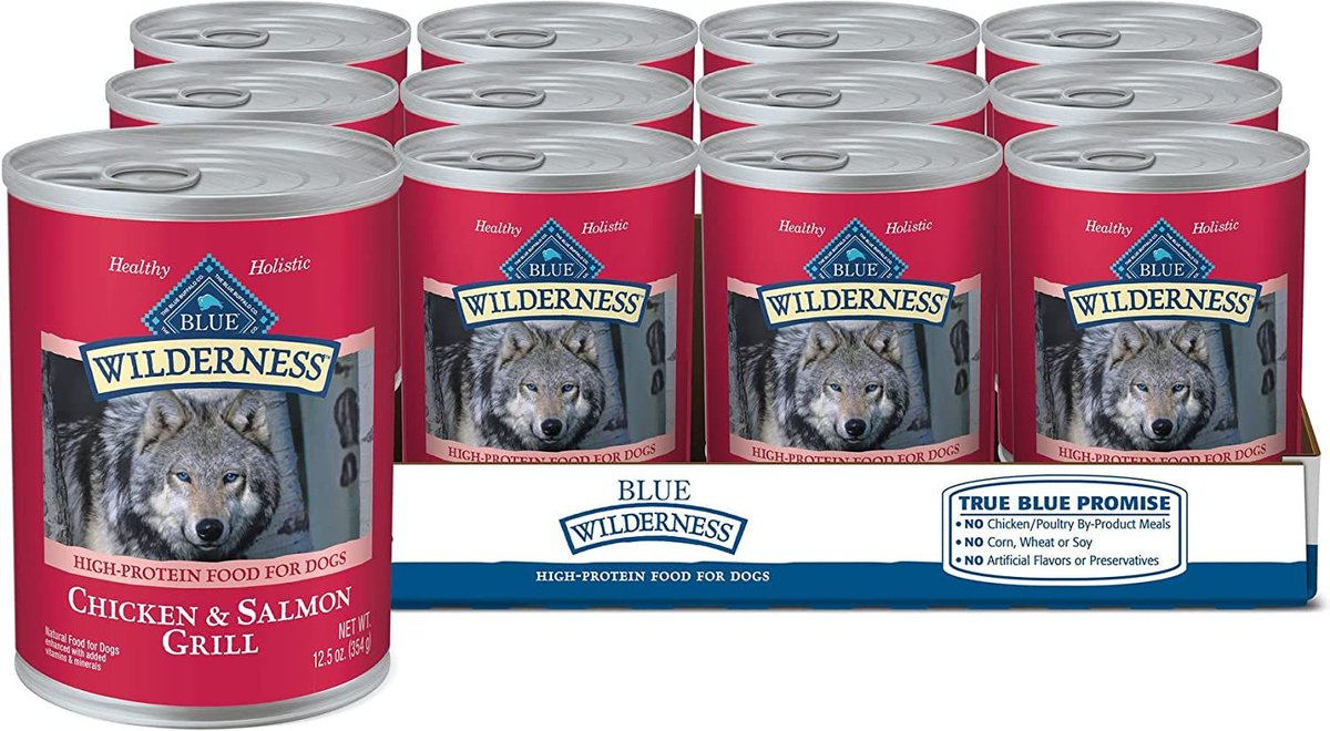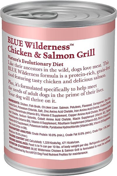 Blue Buffalo Wilderness Adult Grill Natural Salmon + Chicken Wet Dog Food, 354-g can, case of 12