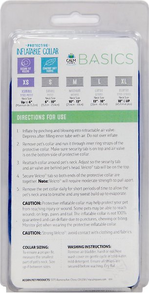 This inflatable collar may help protect your pet from reaching an injury or wound on their body. Some pets may be able to reach wounds on legs, paws and tail.