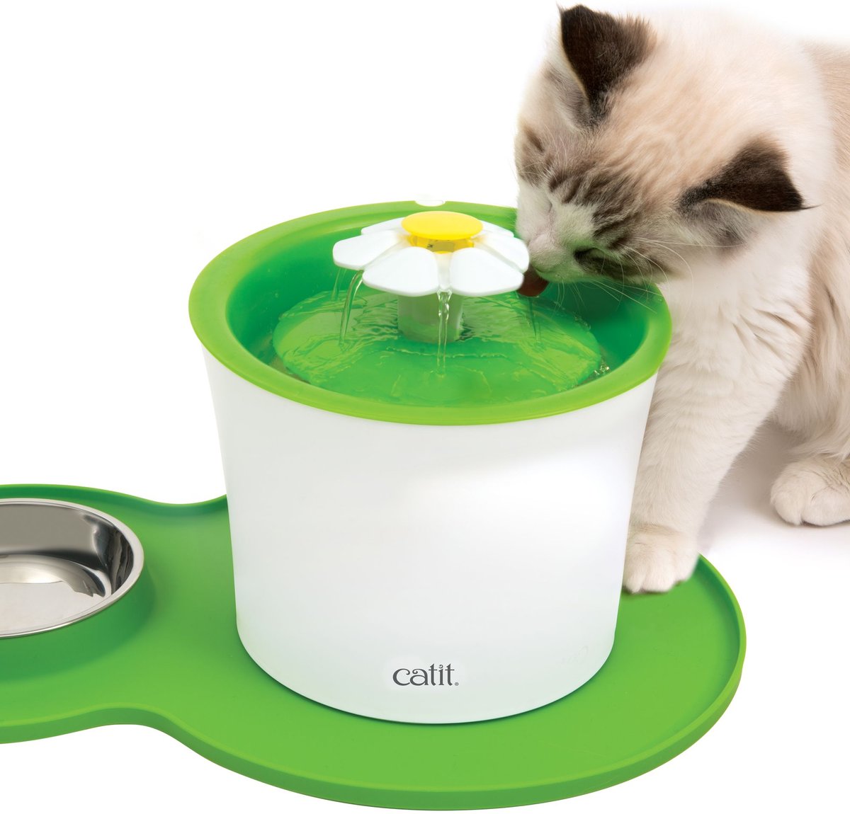 Includes a hygienic, dishwasher-safe, stainless-steel dish with a shallow design that won’t stress your kitty’s whiskers.