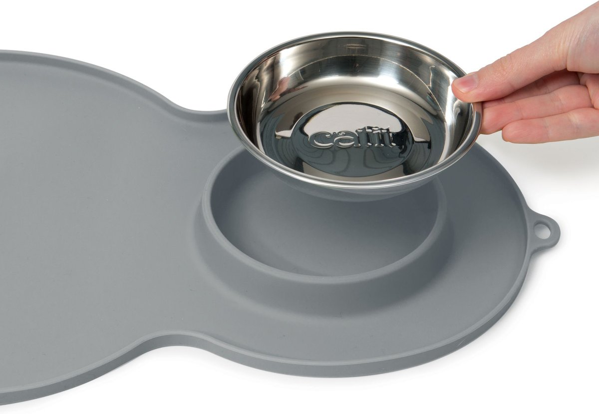 Includes a hygienic, dishwasher-safe, stainless-steel dish with a shallow design that won’t stress your kitty’s whiskers.