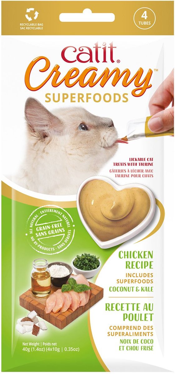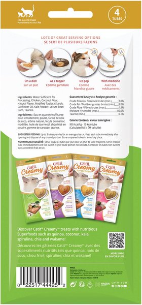 Catit Creamy Superfood Chicken Recipe with Coconut & Kale Lickable Cat Treats, 10-g tube, pack of 4