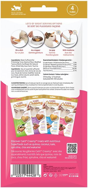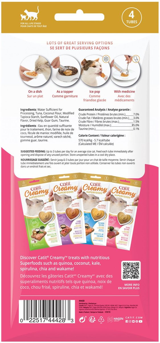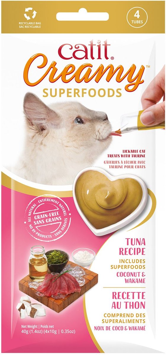 Catit Creamy Superfood Tuna Recipe with Coconut & Wakame Lickable Cat Treats, 10-g tube, pack of 4