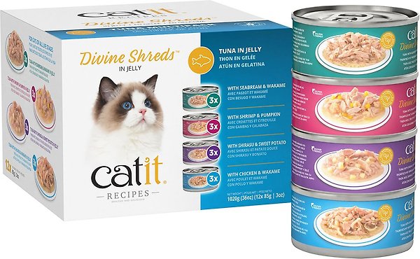 Catit Divine Shreds in Jelly Tuna Multipack Grain-Free Wet Cat Food, 85-g can, pack of 12