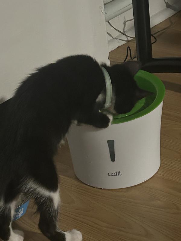 I gave our old Catit Flower away. I had ordered a dishwasher-safe stainless fountain from another brand, which I thought would be healthier than plastic and easier