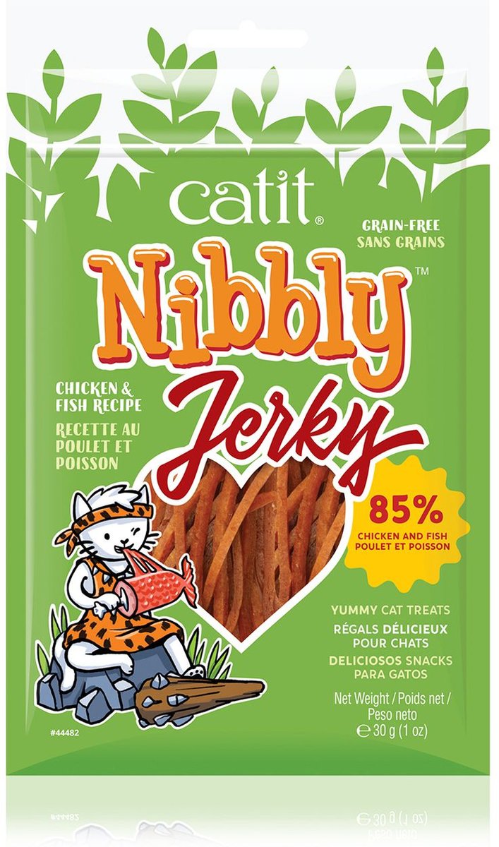 Catit Nibbly Chicken & Fish Jerky Cat Treats, 30-g pouch
