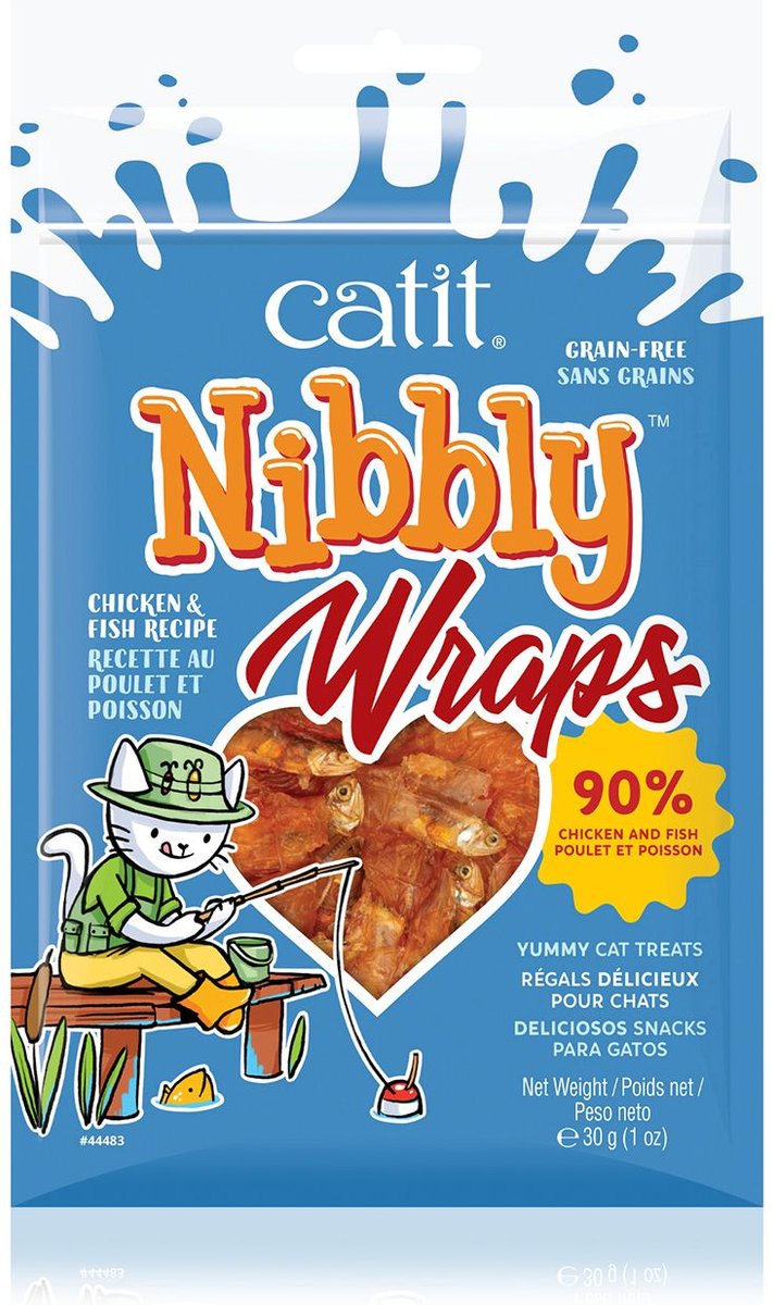 Catit Nibbly Wraps Chicken & Fish Dehydrated Cat Treats, 30-g pouch