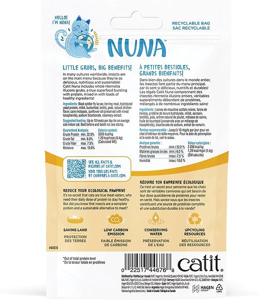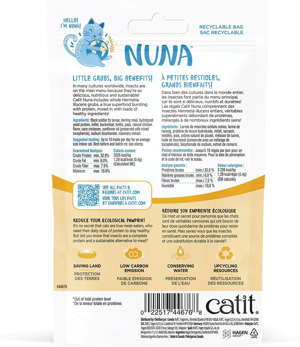 Catit Nuna Insect Protein & Herring Crunchy Cat Treats, 60-g pouch