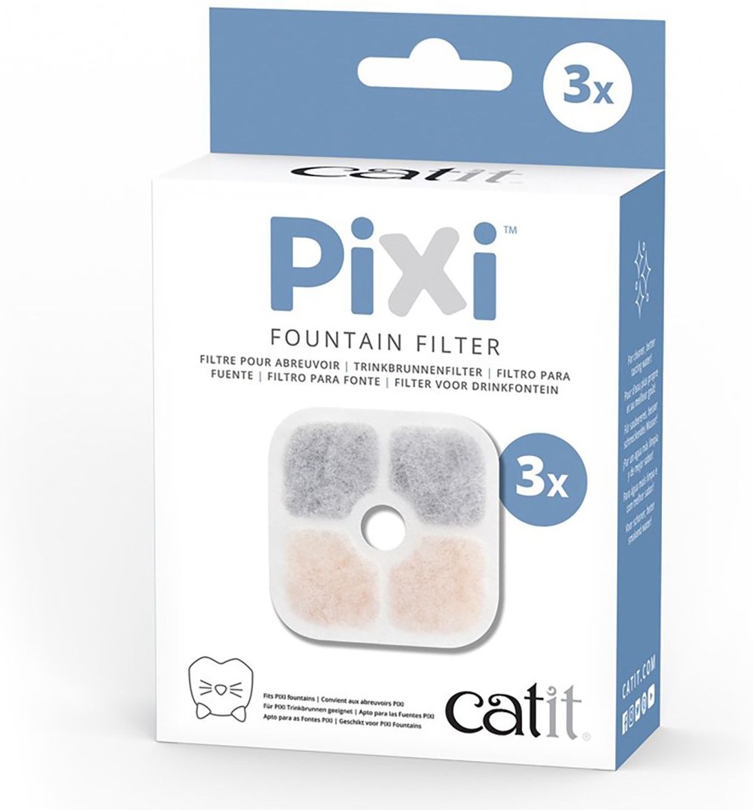 my step-cat has a pixi water fountain that he loves dearly and has started drinking so much water (and looking at the litter box, he is well hydrated), so i was ecstatic to find not only a replacement filter, but a pack of 12!