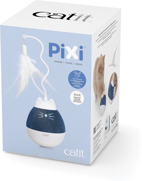 - Thanks to the built-in counterweight, the Catit PIXI Spinner will automatically return to its upright position, even while your cat paws at it relentlessly.
