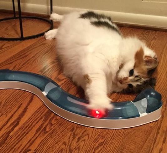 The Catit circuit toy has been popular in our house; I added the 2.0 Fireball and the blinking light attracts feline attention. Nice product and fun for the humans of the house to watch, too.