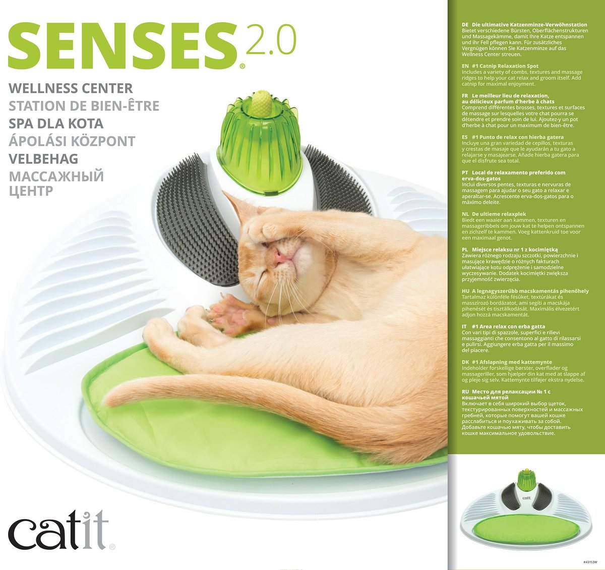 - Each Wellness Center includes a gum stimulator, dried catnip, two grooming combs, an ergonomic base with massage ridges, a broad cushion, a multi-purpose massager and an anti-skid ring.