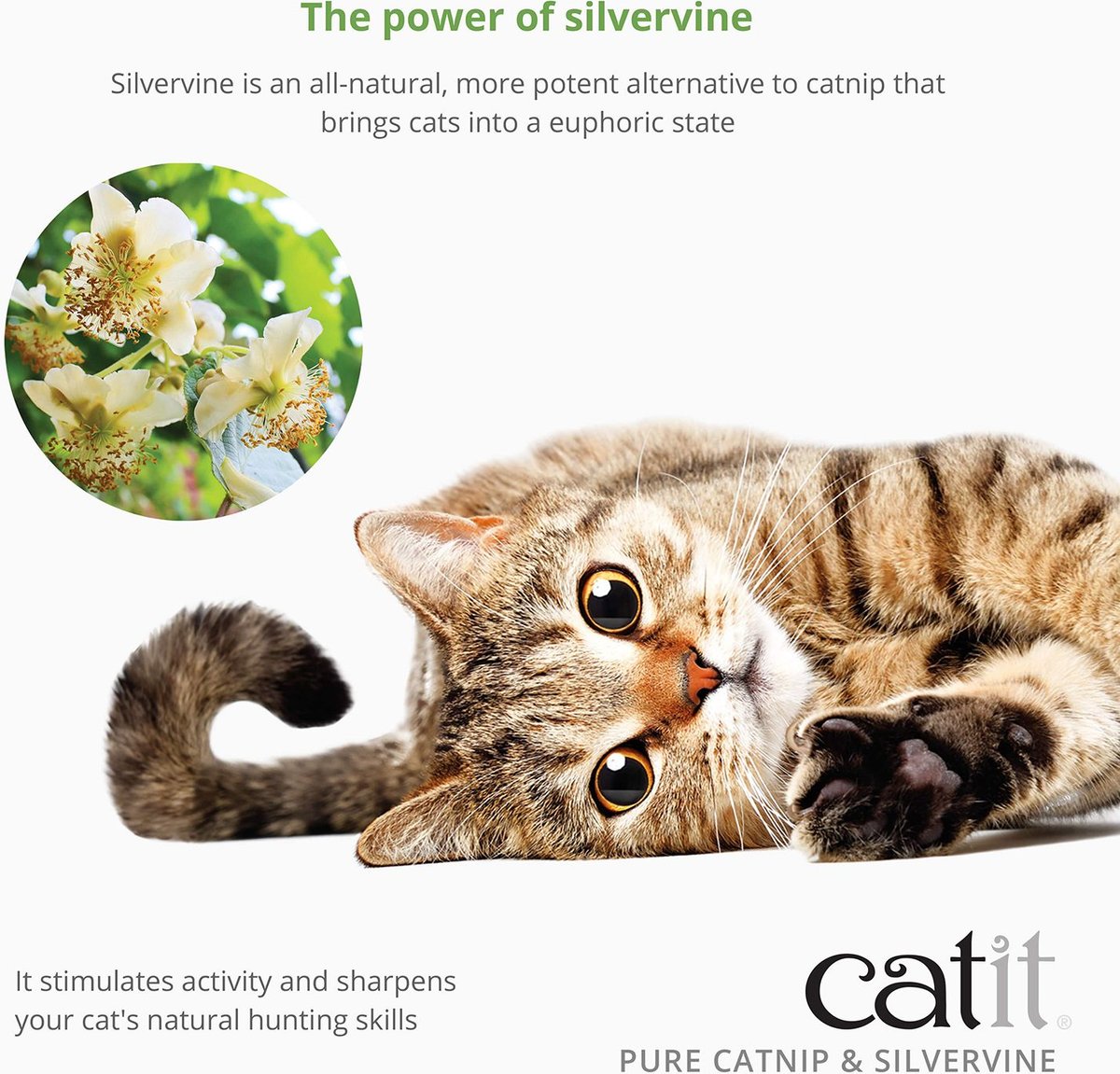 - Blend of silvervine and catnip excites and stimulates cats to play.