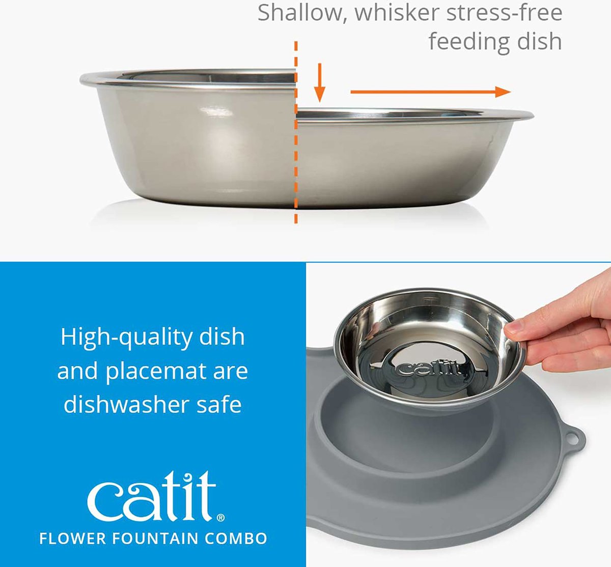 - Comes with a shallow feeding dish that won’t stress your kitty’s whiskers.