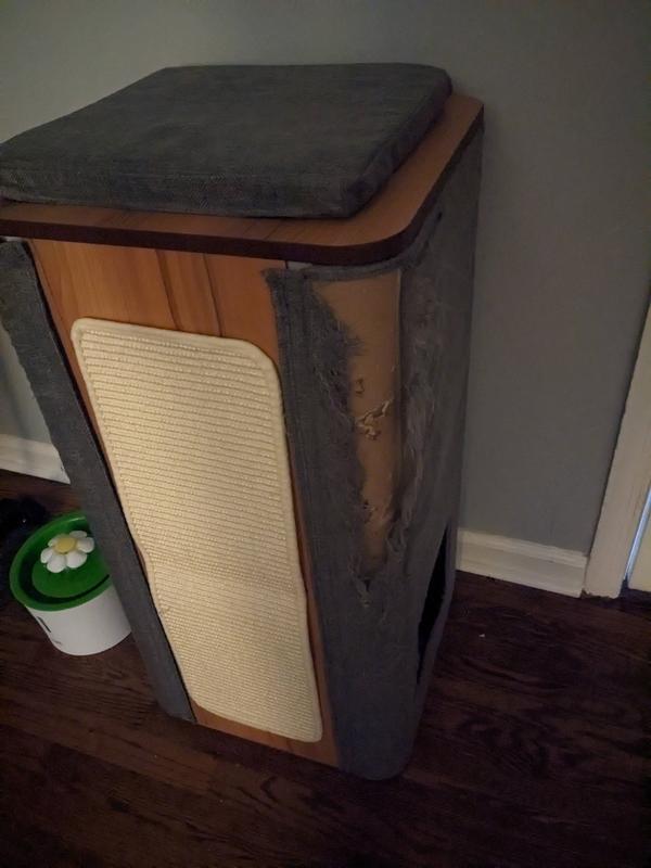 Our two kitties love this thing, but the one flaw is the fabric used. It so not built to handle any car scratches at all. Ours sometimes missed the mark fo the scratching pad and hit the grey fabric and it did not stand a chance. Luckily they sell replacement parts, but they will have the same issue if they are every scratched too.