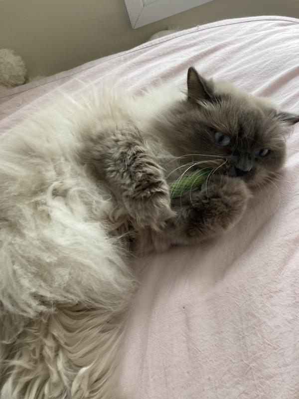 I opened the packages and gave each of my cats one, they both started chewing on them right away, rolling around on the floor trying to hug their new toys and rubbing them on their faces. So cute! Anything that makes them happy makes me very happy! Great product! I've been wanting something to help keep their teeth clean other than an additive to put in their water I'm just not convinced that's the best thing to use.