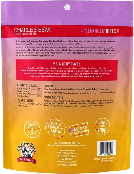 Charlee Bear Bearnola Bites Peanut Butter & Honey Flavor Dog Treats, 8-oz bag