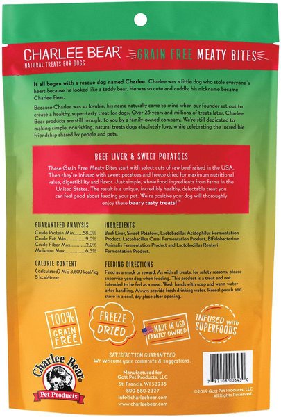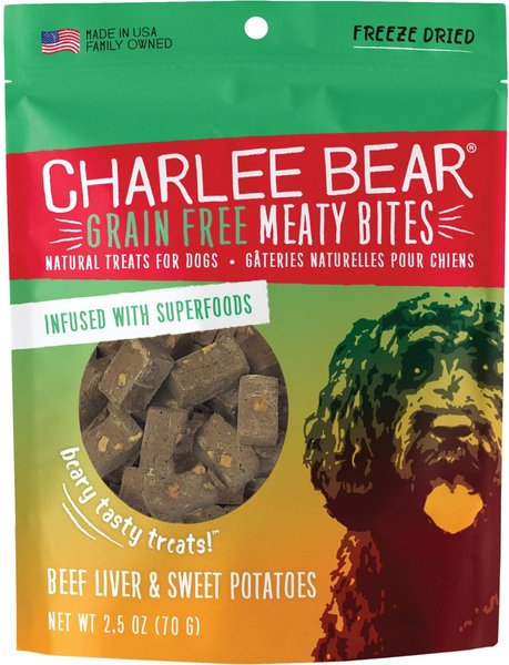 Charlee Bear Meaty Bites Beef Liver & Sweet Potatoes Grain-Free Freeze-Dried Dog Treats, 2.5-oz bag