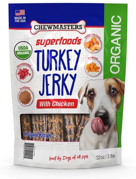 Organic Turkey, Organic Chicken, Organic Barley Flour, Organic Oat Flour, Organic Cane Molasses, Organic Cranberries, Organic Flaxseed, Organic Pumpkin, Organic Sweet Potato, Non-Gmo Coconut Glycerin, Organic Dried Cultured Skim Milk, Sea Salt, Organic Blueberries, Mixed Tocopherols (Preservative).