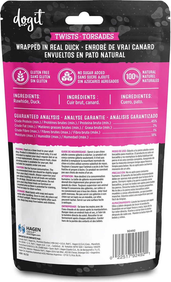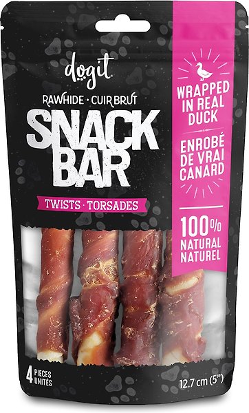 Dogit Snack Bar Rawhide Duck-Wrapped Twists Dog Treats, 12.7-cm, 4 count