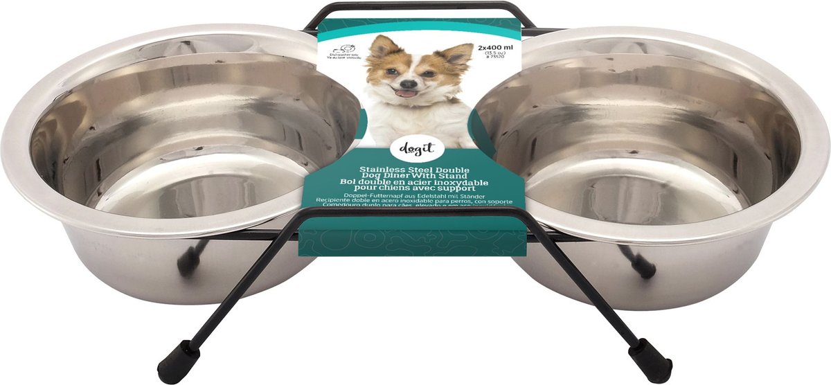 Dogit Stainless Steel Double Dog Bowl, 400-ml