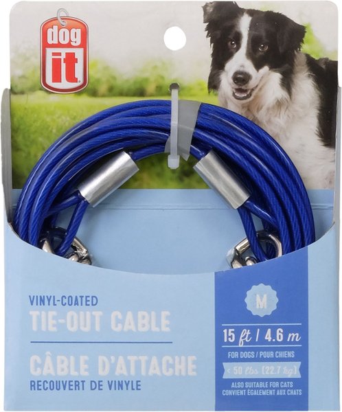 Dogit Tie-Out Cable, Blue, Medium, 15-ft