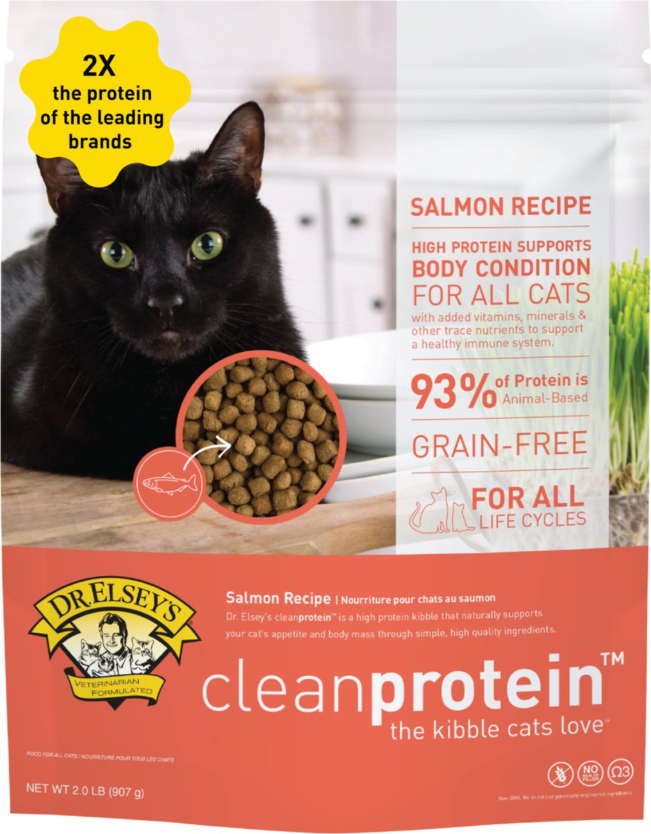 Making the transition from your cat's current food should be gradual to prevent any digestive upsets. Allow 7-10 days to make the transition by adding a little more Dr. Elsey's cleanprotein each day and decreasing your current cat food. Dr. Elsey's clean protein Salmon Recipe is formulated to meet the nutritional levels established by the Association of American Feed Control Officials (AAFCO) Cat Food Nutrient Profiles for all life stages.