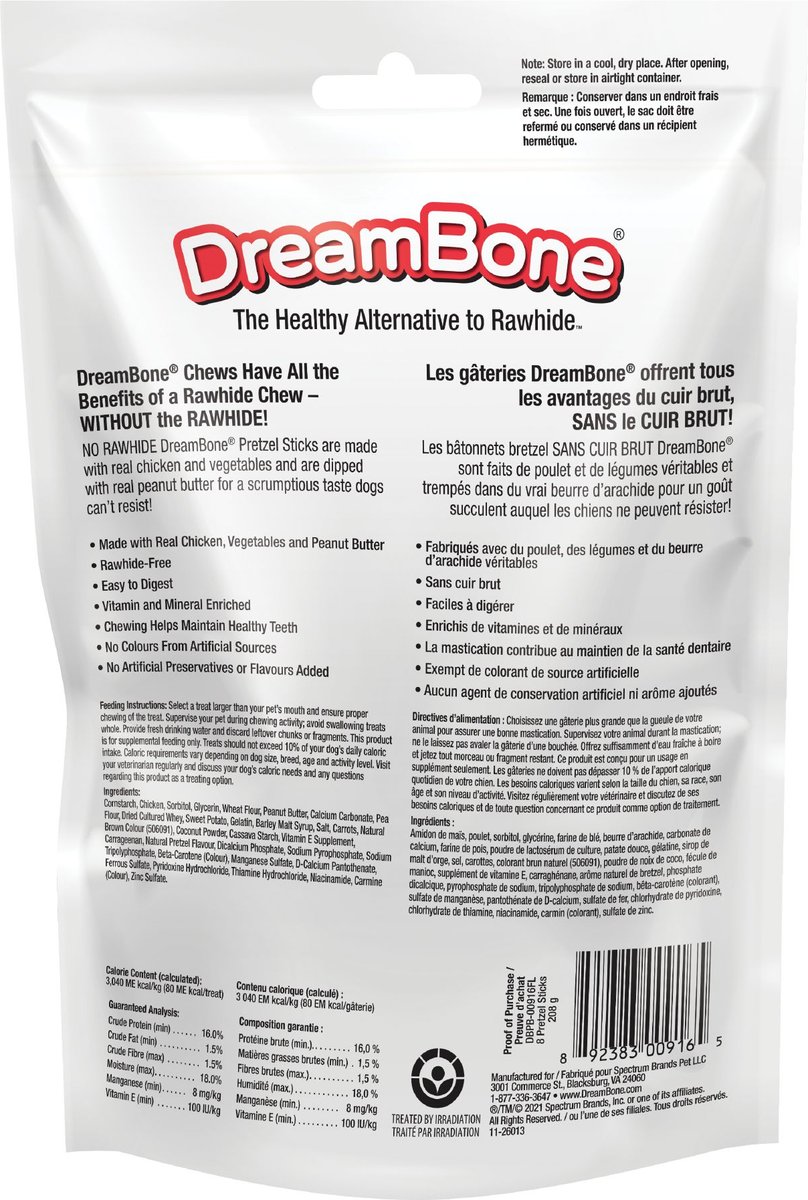 DreamBone Pretzel Sticks Dipped with Peanut Butter Dog Treats, 8 count