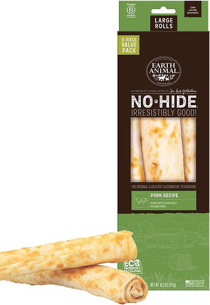 Earth Animal No-Hide Large Rolls Long Lasting Natural Rawhide Alternative Pork Recipe Chew Dog Treats, 3 count