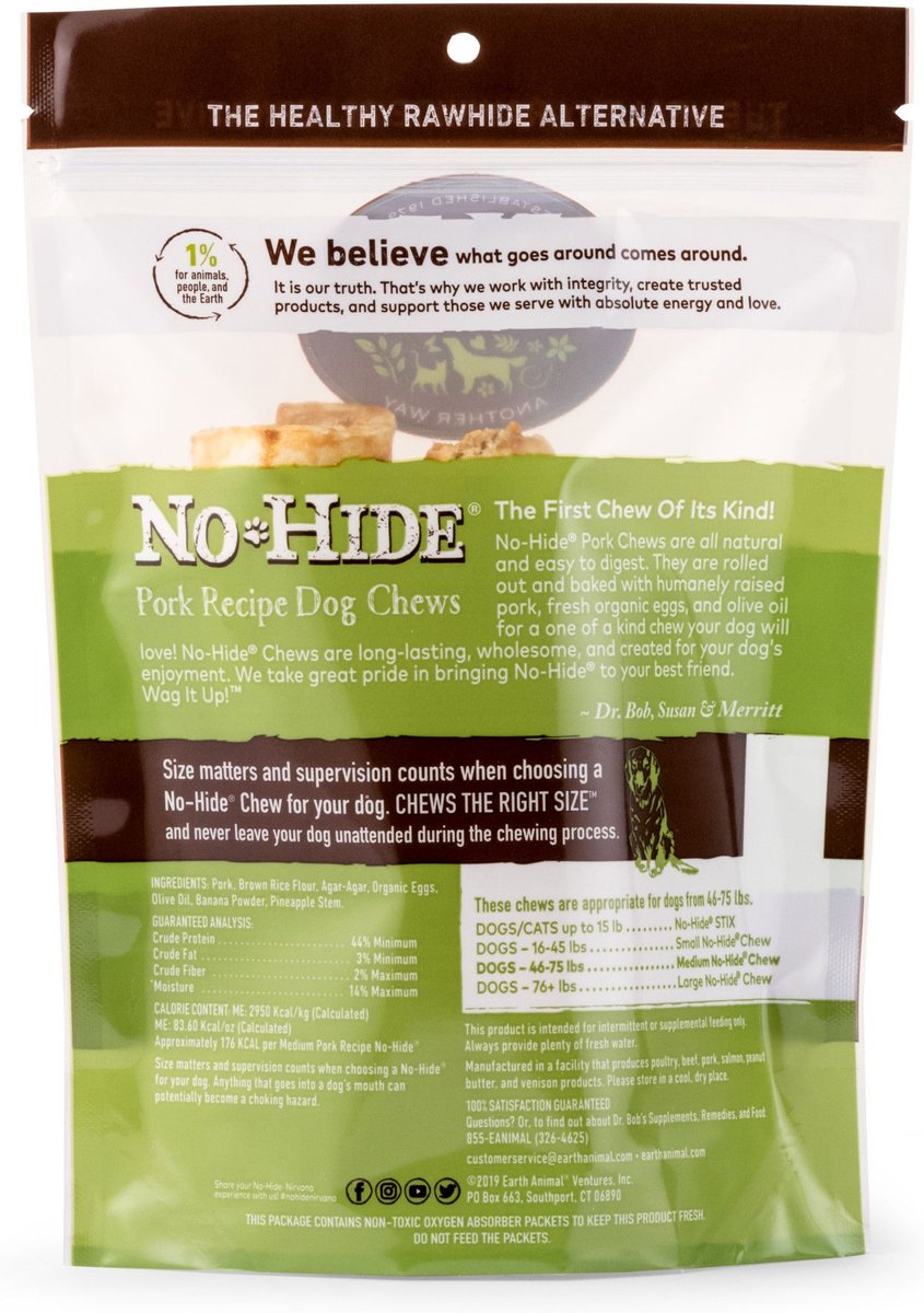 Earth Animal No-Hide Medium Rolls Long Lasting Natural Rawhide Alternative Pork Recipe Chew Dog Treats, 2 count