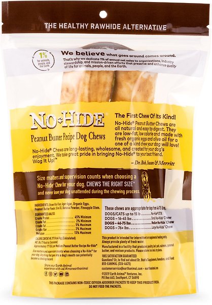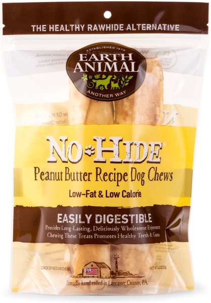 Earth Animal No-Hide Medium Rolls Long Lasting Natural Rawhide Alternative Peanut Butter Vegetarian Recipe Chew Dog Treats, 2 count