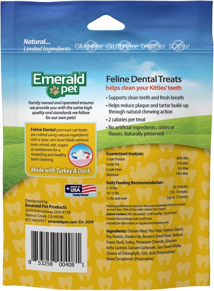 Emerald Pet Feline Dental Treats with Turducky Cat Treats, 3-oz bag